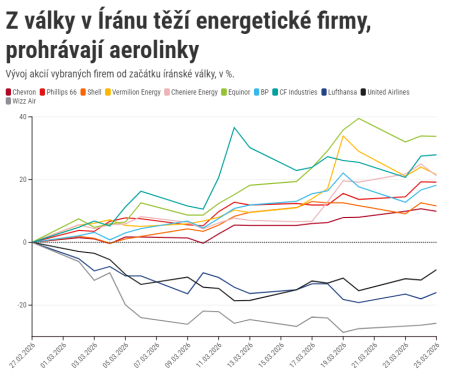 Energetické firmy zaznamenaly růst akcií až o 33 % kvůli americko-íránskému konfliktu. Equinor vzrostl o třetinu, aerolinky naopak klesají kvůli zdražení paliv.